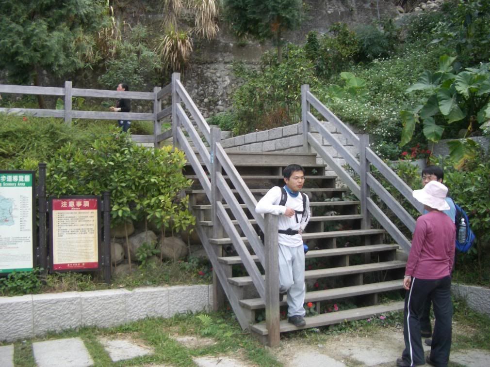 20071223耶誕節前,精神:睡不飽 還是跟著一群人去爬大坑三四五步道... 不抱怨了,來分享我們爬的經過吧! 從中正露營區進來,大家一副精神抖擻的樣子... 路上有涼亭可以休息 進入步道前,有個漂亮的洗手間,不想爬的過程找地方掩護方便的話,記得在這邊先解決一下 繼續前進,一路都還是柏油路... 到了吊橋啦,來拍張照紀念一下唄! 吊橋上...給他搖搖搖... 過吊橋後,有個涼亭,休息後再出發! 來個FALSH動畫秀照片吧! 接著繼續爬會發生啥事呢? 待敘...つづく...